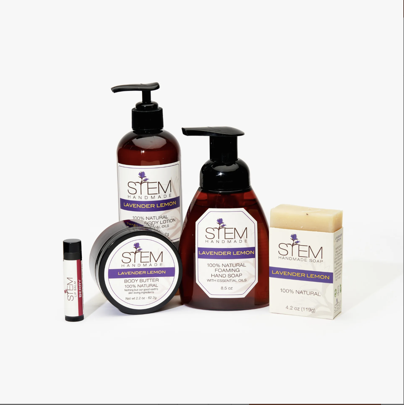 STEM Handmade Soap, a destination for those who love all-natural, handcrafted bath and body products. Nestled in the heart of Lakewood, we make an array of soaps, lotions, lip balms, bath bombs, skin care, deodorant, men's shaving essentials, and thoughtfully curated gift sets. From our humble beginnings in our home basement to our charming boutique-style shop, we take pride in crafting every product with care, using only the finest natural ingredients. Our mission is Care of Self, Care of Community and Care of Planet.